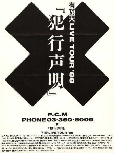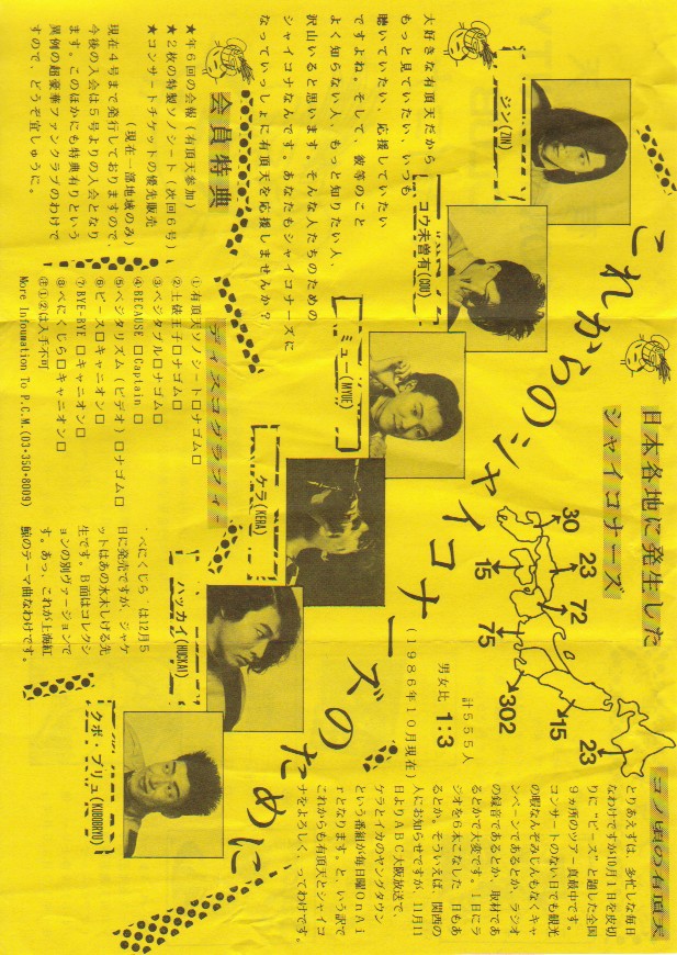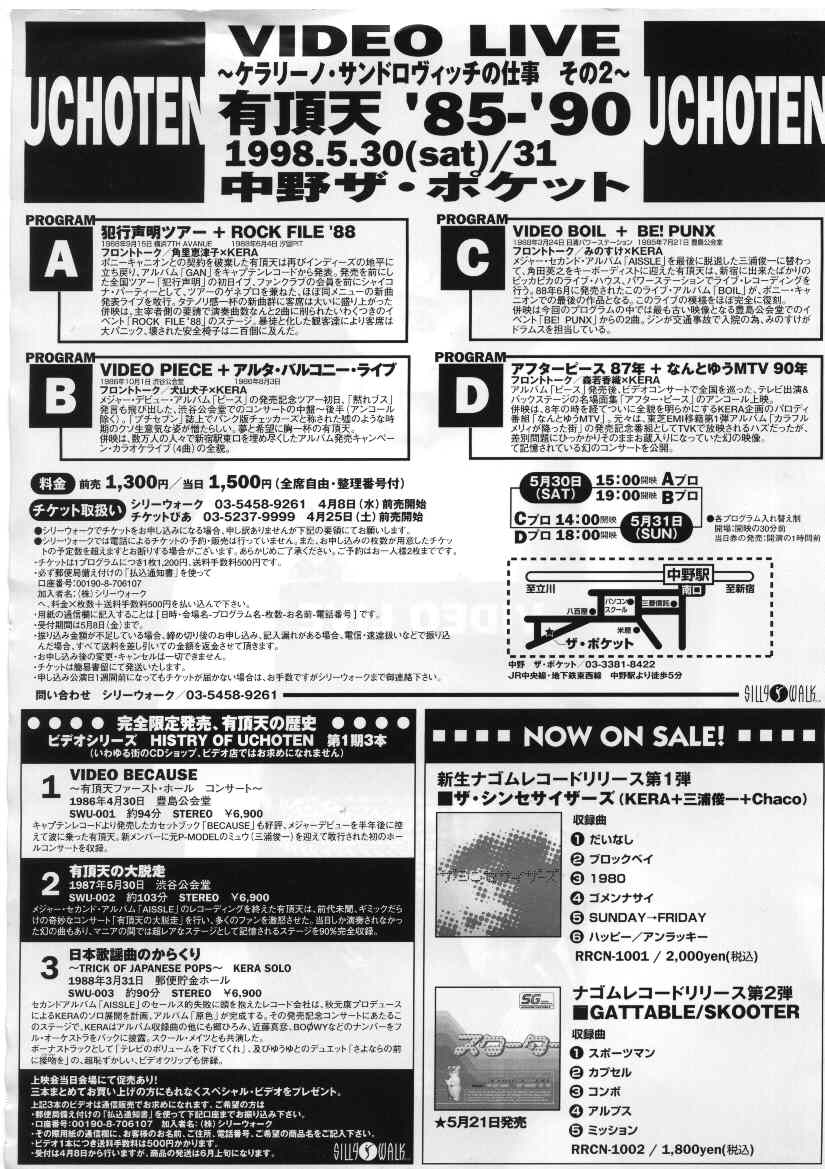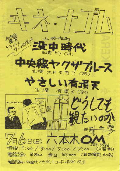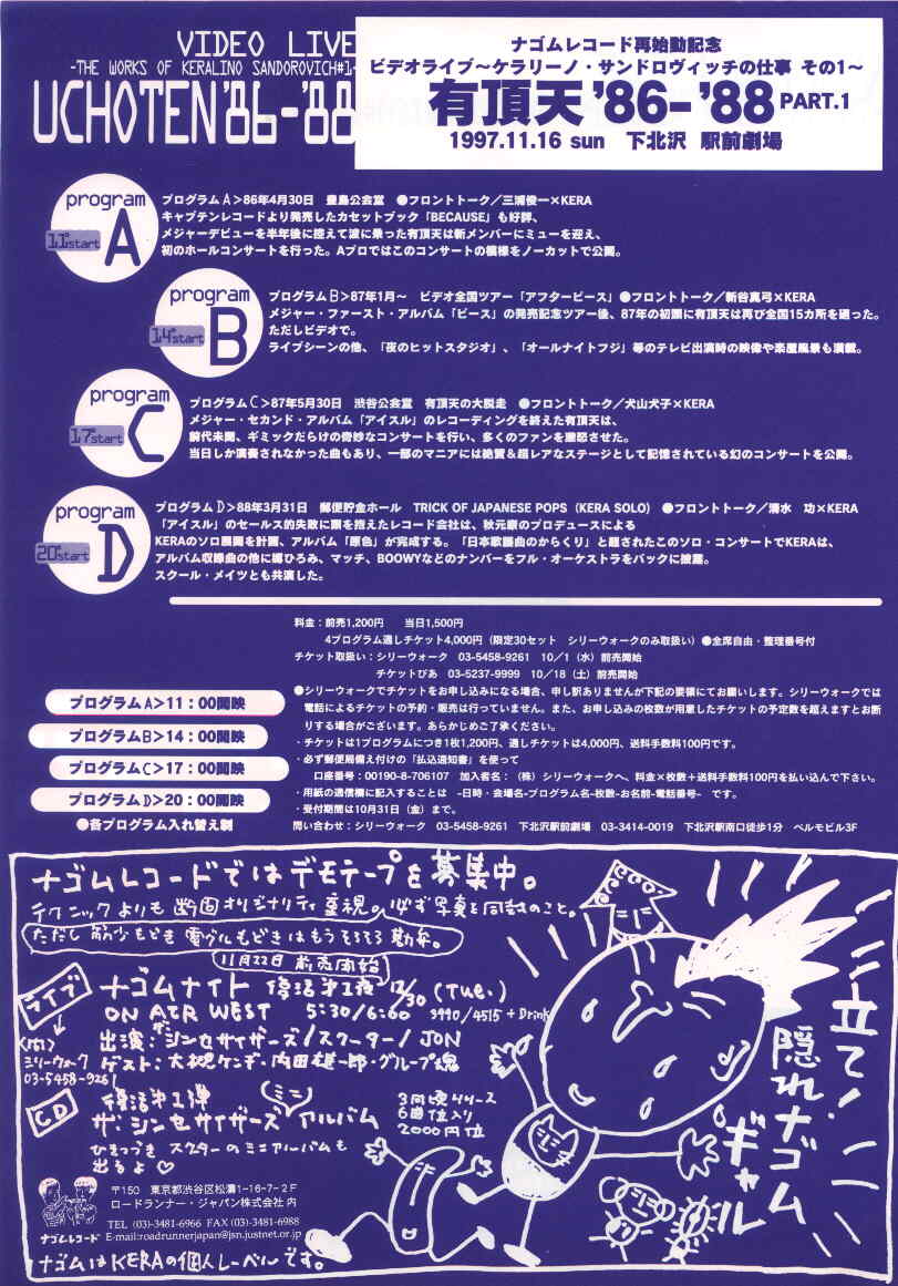 「アフターピース」「有頂天を殺せ」「犯行声明」「シャイコナ3&4」「イゴール」「ナゴムサマーツアー」「ナゴム総決起第4回」さよ