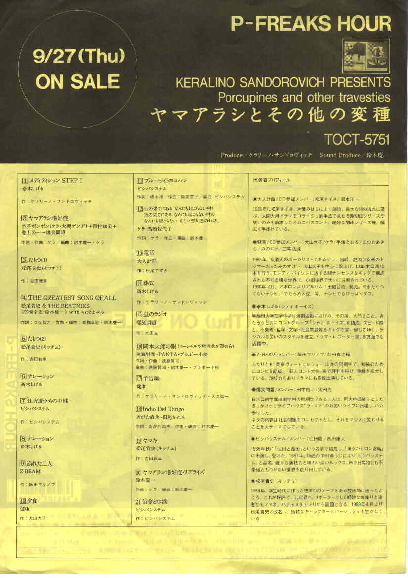「SONIC SKY960907」「シンセ960612A&B」零兄貴/「シンセ960322&960612仮」「ナゴムストライクスバックA&B」ミミナリ