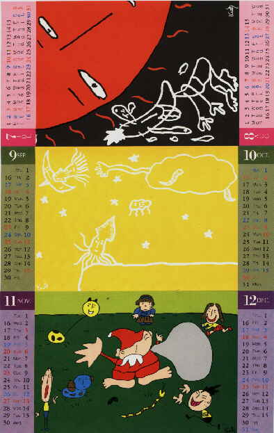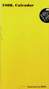 ケラがイラストをかいてる1988年のカレンダー。でも私は10年後の1998年に新品で買いました(笑)。2枚だけ縦のがまじっていて、使いづらそうなんですけど、きっと何も考えずに縦のイラストかいちゃったりしただけなんでしょうね(笑)。